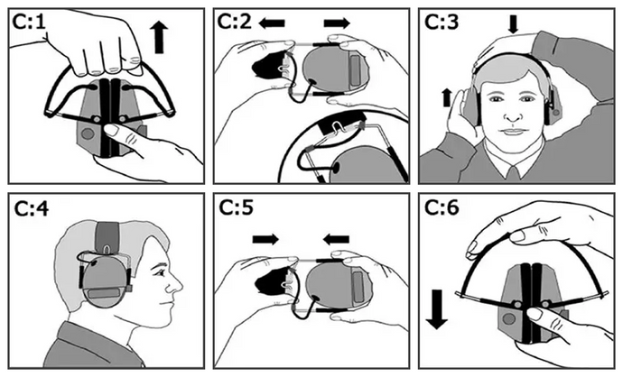 A simple, three-step fold securely collapses the earmuffs into a compact shape.